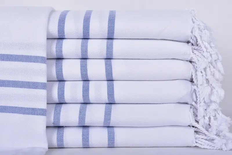 Hochwertige türkische Baumwolle zeichnet diese Handtücher aus, die eine hervorragende Wasseraufnahmefähigkeit und schnelles Trocknen gewährleisten und sie von herkömmlichen Handtüchern unterscheiden. Jedes Handtuch misst 40 x 71 Zoll oder 100 x 180 cm mit einer Toleranz von ±2,5 cm und wiegt etwa 400 Gramm. Alle Handtücher sind vorgeschrumpft und werden auf traditionellen Handwebstühlen hergestellt.