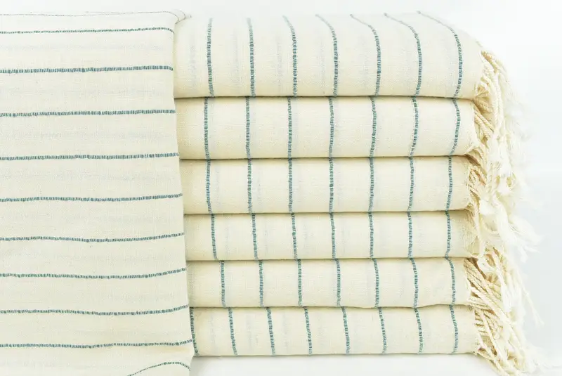 Hochwertige türkische Baumwolle sorgt für eine außergewöhnliche Saugfähigkeit, was zu schnelleren Trocknungseigenschaften führt, die denen herkömmlicher Handtücher überlegen sind. Türkische Handtücher haben eine Größe von 36 x 67 Zoll oder 90 x 170 cm mit einer Toleranz von 1 bis 2,5 cm und wiegen etwa 216 Gramm. Die handgewebte Konstruktion ermöglicht geringfügige Größenabweichungen.