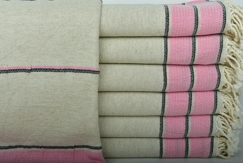Hochwertige türkische Baumwolle sorgt für eine hervorragende Saugfähigkeit, die sich durch die weiche Textur der Fasern auszeichnet. Die türkischen Handtücher haben eine Größe von 36 x 71 Zoll oder 90 x 180 Zentimeter und wiegen etwa 430 Gramm. Beim Handweben kommt es zu Größentoleranzen von bis zu 5 Zentimetern.
