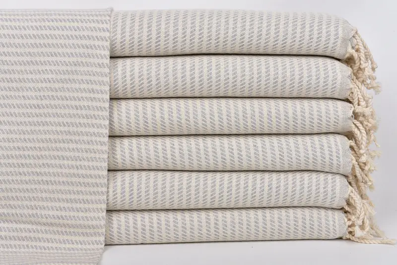 Diese aus hochwertiger türkischer Baumwolle gefertigten Handtücher gewährleisten eine außergewöhnliche Saugfähigkeit und schnelle Trocknungsfähigkeit. Das Material zeichnet sich durch seine Weichheit und Strapazierfähigkeit aus, wodurch ein Produkt entsteht, das herkömmliche Handtücher übertrifft. Jedes türkische Handtuch misst 20 x 40 Zoll oder 50 x 100 Zentimeter mit leichten Toleranzen von 1 bis 2,5 Zentimetern, um die Einheitlichkeit aller Chargen zu gewährleisten.