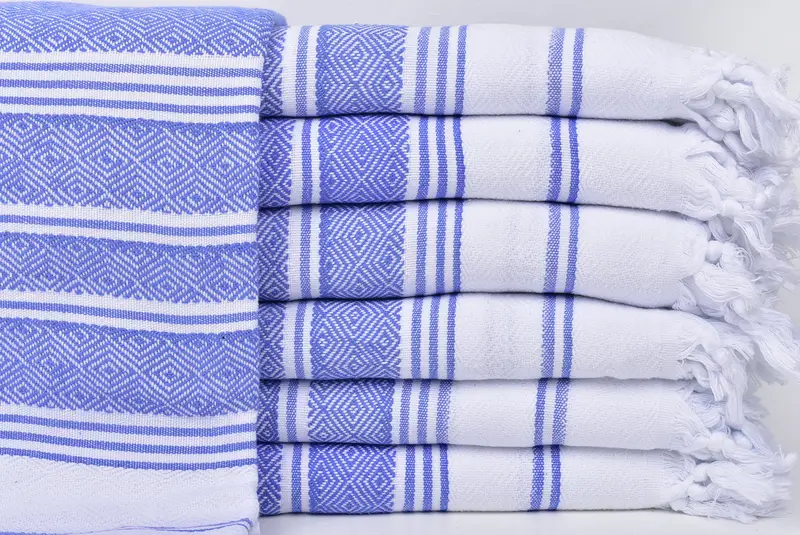 Türkische Handtücher zeichnen sich durch ihre hervorragende Saugfähigkeit und Schnelltrocknung aus und sorgen für minimale Wassereinlagerungen. Diese Handtücher sind das Ergebnis traditioneller Handwebereien aus hochwertiger türkischer Baumwolle und zeichnen sich durch eine bemerkenswerte Wasseraufnahme bei gleichzeitiger Beibehaltung ihrer Weichheit aus. Die Spezifikationen für türkische Handtücher definieren eine Abmessung von 100 x 180 cm (40 x 71 Zoll) mit einer Toleranz von ± 2,5 cm und einem Gewicht von etwa 370 Gramm. Jedes Handtuch ist ...