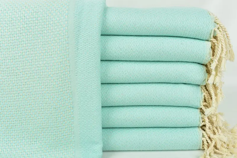 Premium-Peshtemal-Handtücher aus türkischer Baumwolle zeichnen sich durch ihre hohe Saugfähigkeit und schnell trocknenden Eigenschaften aus. Diese auf traditionellen Handwebstühlen gewebten Handtücher bestehen aus Baumwolle, die Wasser effizient aufnimmt und schnell trocknet, wodurch der Bedarf an zusätzlichen Ressourcen reduziert wird. Die Handtücher sind eine umweltfreundliche Wahl und weisen außerdem eine weiche Textur auf, wodurch sie sich von herkömmlichen Handtüchern unterscheiden.