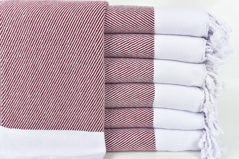 Türkische Handtücher werden sorgfältig aus hochwertiger türkischer Baumwolle handgewebt und sorgen für außergewöhnliche Saugfähigkeit und schnelles Trocknen. Da es sich um ein umweltfreundliches Produkt handelt, verbrauchen diese Handtücher weniger Ressourcen und Energie. Jedes Handtuch hat eine Standardgröße von 100 x 180 cm (40 x 71 Zoll) mit einer Toleranz von 1–2,5 cm und wiegt etwa 400 Gramm.