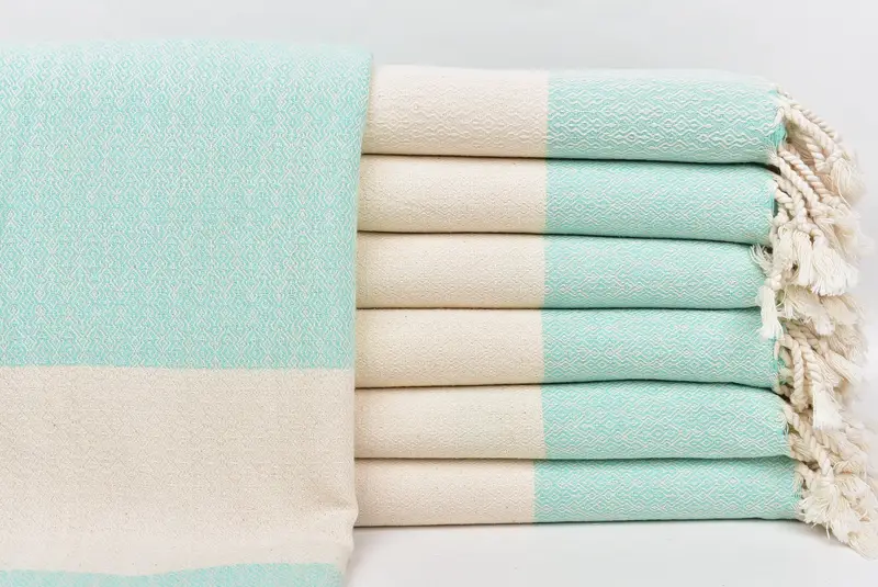 Hochwertige türkische Baumwolle, die sich durch ihre hohe Saugfähigkeit und schnelle Trocknungseigenschaften auszeichnet, sorgt dafür, dass die Handtücher sowohl effektiv als auch praktisch für verschiedene Verwendungszwecke sind. Die Handtücher sind 36 x 67 Zoll bzw. 90 x 170 cm groß, haben eine leichte Toleranz von bis zu 2,5 cm und wiegen etwa 340 Gramm, was ein vielseitiges Produkt darstellt. Das Handwebverfahren garantiert eine gleichbleibende Qualität.