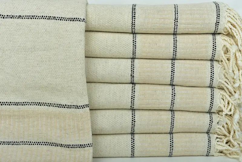 Hochwertige türkische Baumwolle zeichnet die türkischen Handtücher aus und sorgt für optimale Wasseraufnahme und schnelle Trocknungszeiten. Daraus ergibt sich ein leichtes Strandtuch mit einem Gewicht von etwa 340 Gramm und den Maßen 40 x 71 Zoll (100 x 180 cm) mit einer Toleranz von 1–2,5 cm.