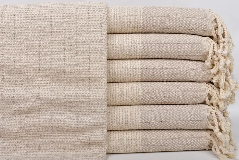 Bio-Handtücher werden aus türkischer Baumwolle hergestellt und sorgen für außergewöhnliche Saugfähigkeit und schnelle Trocknungseigenschaften. Jedes Handtuch zeichnet sich durch traditionelle Handwebtechniken aus und ermöglicht Größenabweichungen von 1 bis 2,5 cm von seinem Standardmaß von 100 x 180 cm (40 x 71 Zoll). Mit einem Gewicht von ca. 380 Gramm bieten die Handtücher ein ausgewogenes Verhältnis von Haltbarkeit und leichter Tragbarkeit.