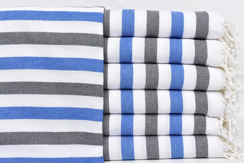 Türkisches Badetuch, Bio-Strandtuch, Saxblau-Grau, gestreift, 36 x 63 Zoll