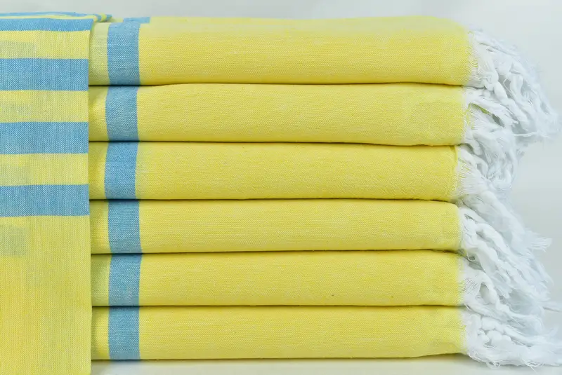 Türkisches Strandtuch nach Maß, blau-gelb gestreift, 36 x 71 Zoll
