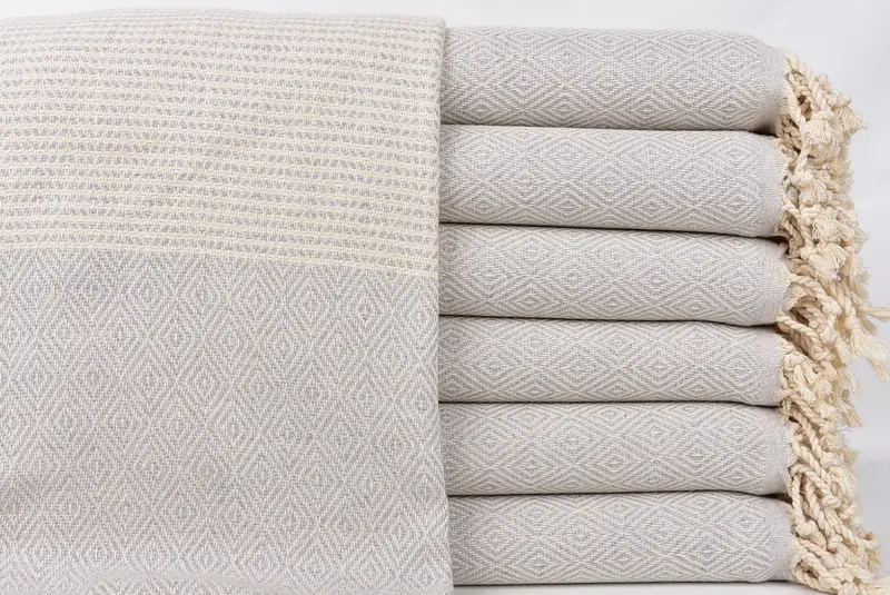 Türkisches Strandtuch, hellgrau, Diamant-Peshtemal, 101,6 x 180 cm