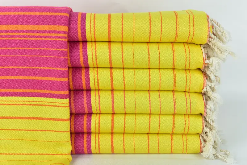 Benutzerdefiniertes türkisches Handtuch mit personalisierten gelb-fuchsiafarbenen Streifen, 40 x 71 Zoll