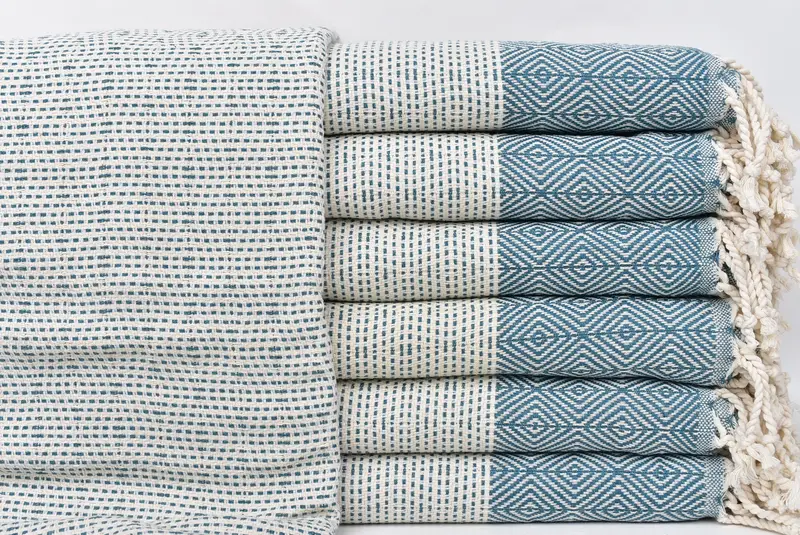 Türkisches Strandtuch, personalisiertes Petrol Blue Diamond Peshtemal, 40 x 71 Zoll