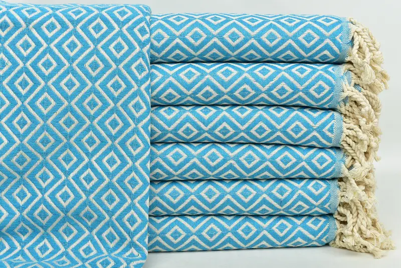 Monogramm-Strandtuch aus türkischer Baumwolle, türkisfarbener Diamant, 40 x 71 Zoll