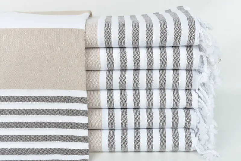 Personalisiertes Strandtuch mit braun-beigen Streifen, 40 x 71 Zoll