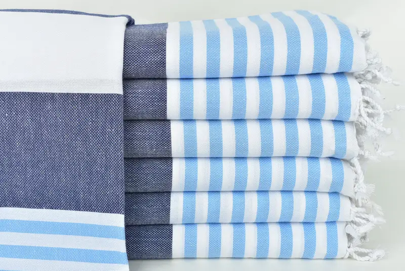Benutzerdefiniertes Strandtuch Marineblau-Babyblau gestreift, türkische Baumwolle, 40 x 71 Zoll
