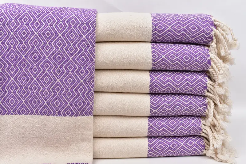 Besticktes Strandtuch aus türkischer Baumwolle, lila Raute, 38 x 67 Zoll
