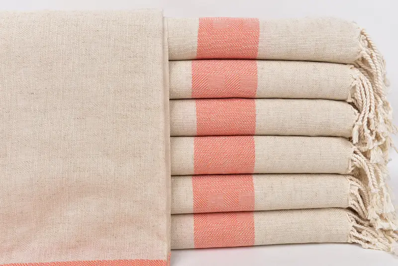Türkisches Handtuch, Monogramm-Strandtuch, orange gestreift, 91,4 x 180,9 cm, Leinen