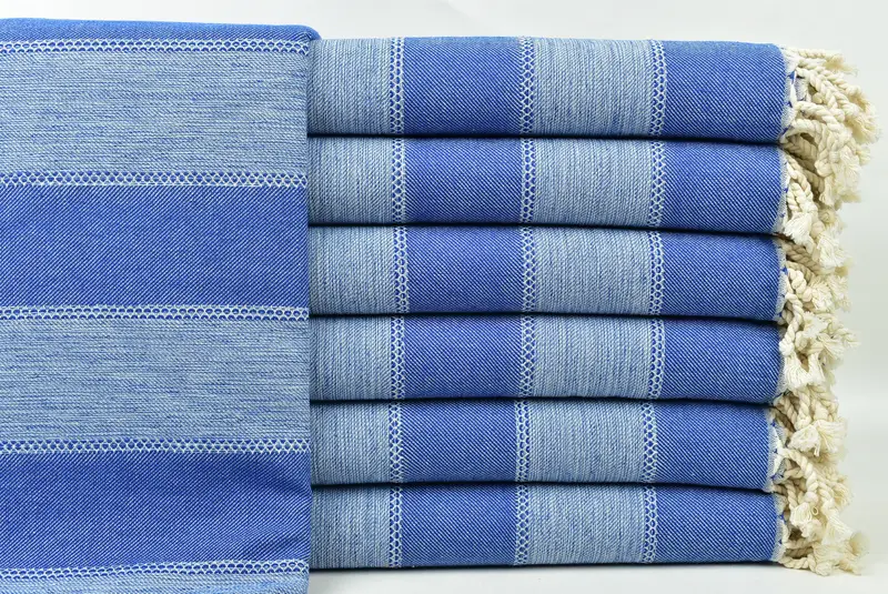 Strandtuch mit Monogramm, türkischer Baumwolle, Saxophonblau gestreift, 36 x 65 Zoll