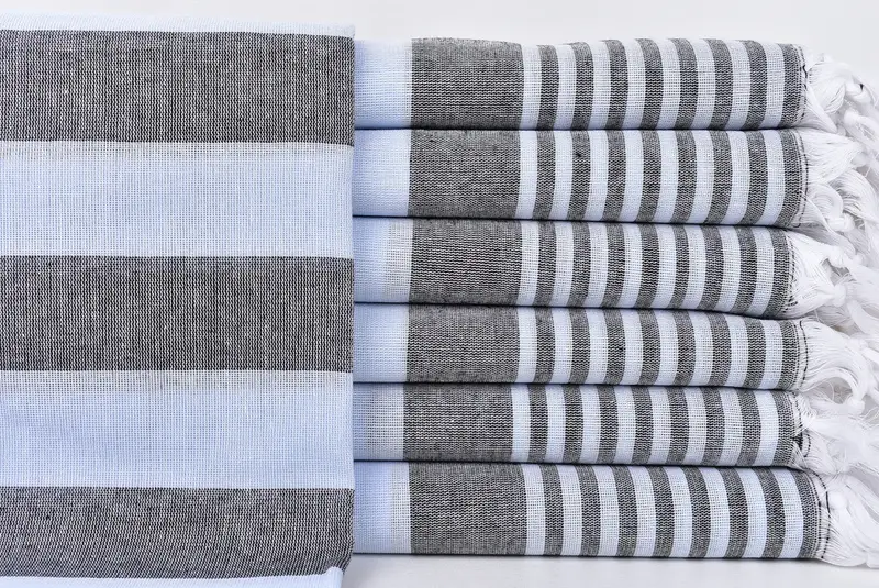 Türkisches Strandtuch, schwarz-babyblau gestreift, 36 x 67 Zoll