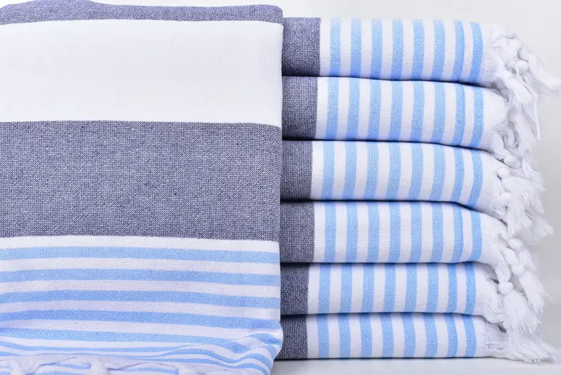 Türkisches Strandtuch aus marineblau-hellblau gestreiftem Frottee, 36 x 67 Zoll