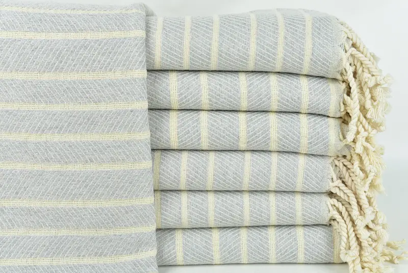Personalisierte Geschenkbox, Fischgrätenmuster, hellgrau, türkisches Strandtuch, 101,6 x 180,9 cm