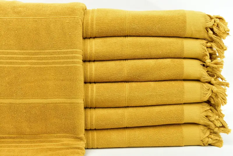 Strandtuch mit Monogramm, türkischer Baumwolle, Senfstreifen, 91,4 x 180,9 cm