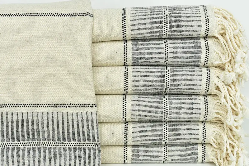 Türkisches Badetuch, marineblaues Leinen gestreift, personalisiertes Handtuch, 40 x 71 Zoll