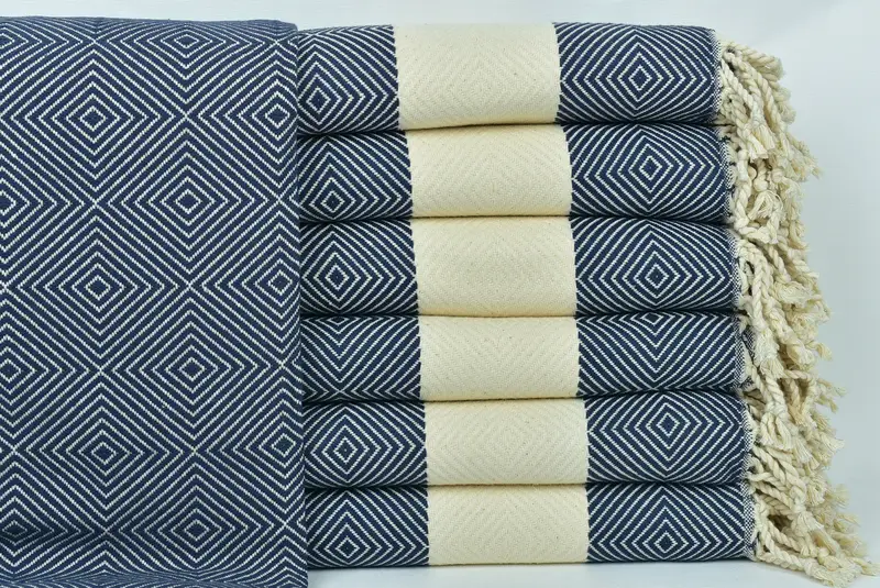 Besticktes Strandtuch, Navy Diamond, 40 x 79 Zoll