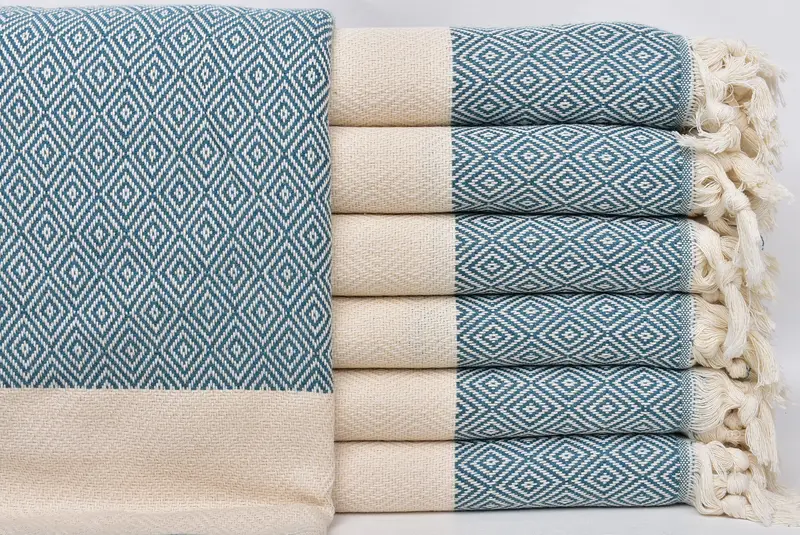 Petrolgrünes Pestemal-Handtuch aus Bio-Baumwolle, Rautenmuster, 40 x 71 Zoll