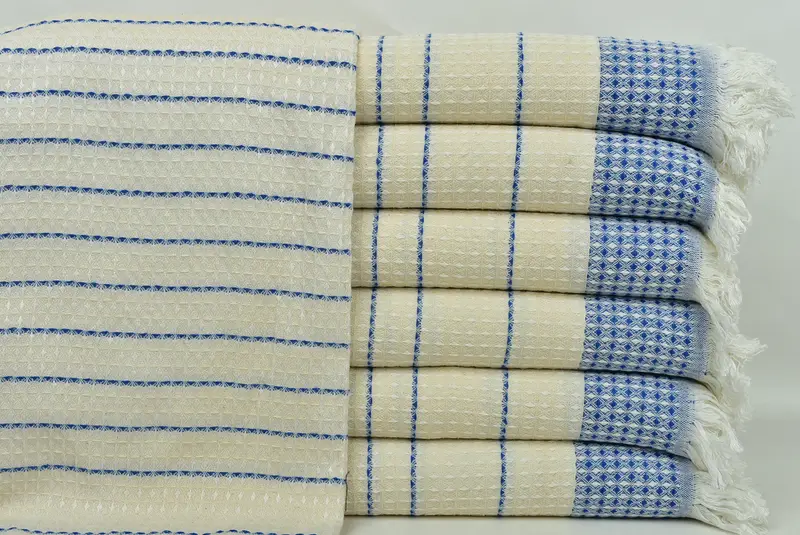Türkisches Strandtuch Sax, blaues Waffeltuch, 40 x 71 Zoll