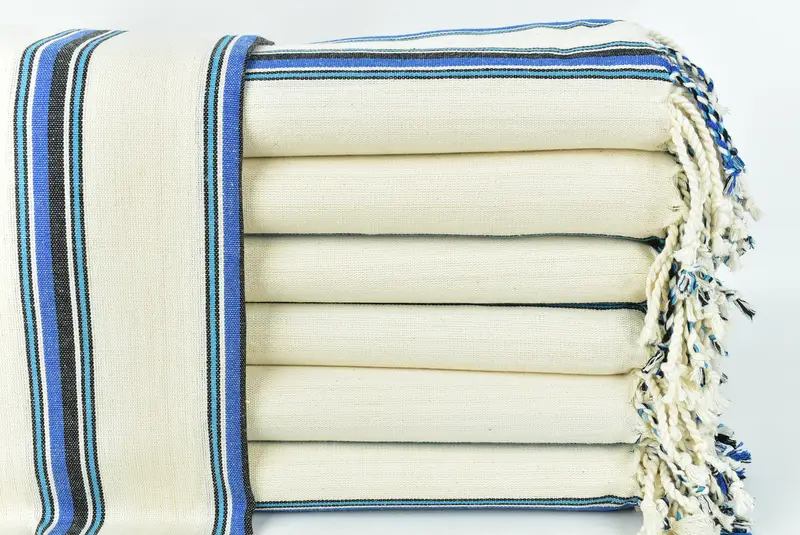 Türkisches Badetuch, individuelles Strandtuch, Saxblau-Schwarz, gestreift, 38 x 71 Zoll