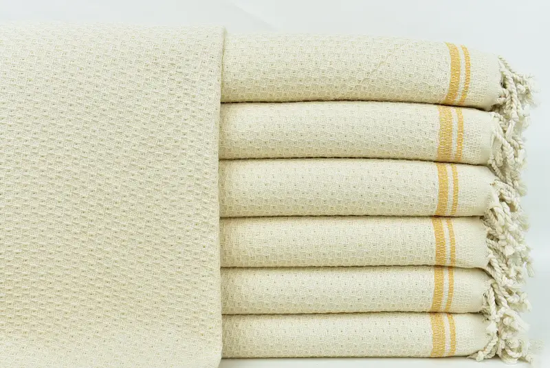 Personalisiertes besticktes Strandtuch, senffarbenes gestreiftes Bio-Badetuch, 36 x 67 Zoll
