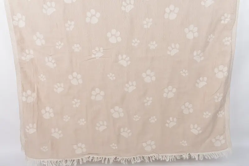 Türkisches Handtuch mit monogrammiertem beigem Pfotendesign, 36 x 71 Zoll