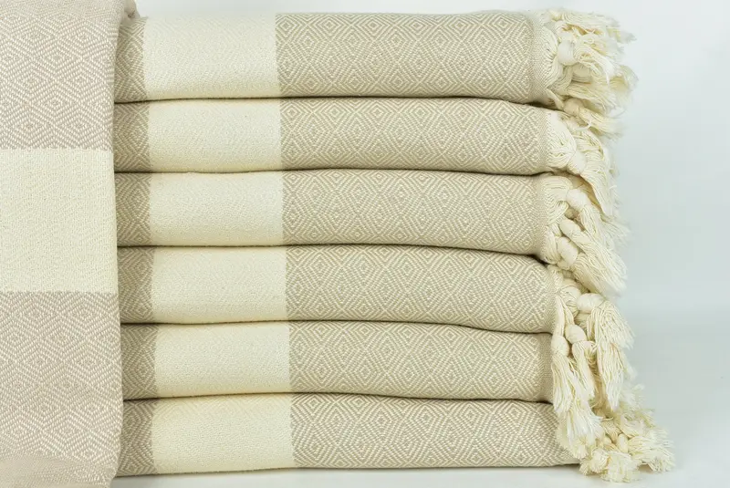 Stranddecke mit Monogramm, Diamantbeige, türkische Baumwolle, 79 x 91 Zoll