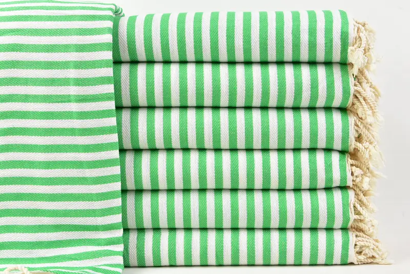 Stranddecke aus türkischer Baumwolle, beige gestreift, 75 x 103 Zoll