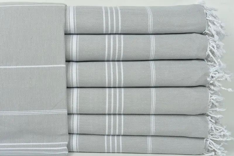 Picknickdecke, türkische Baumwolle, hellgrau gestreift, Überwurf, 160 x 220 cm