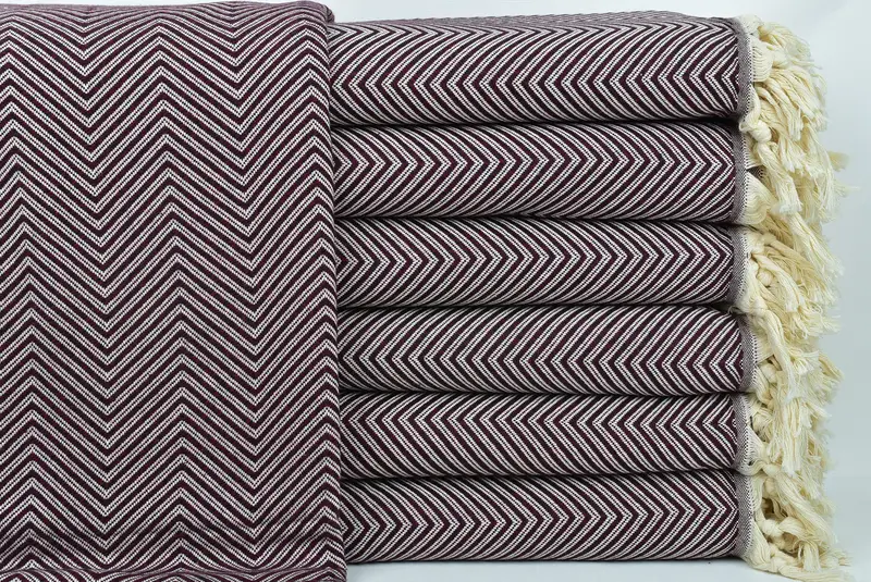 Handgewebte burgunderrot gestreifte Überwurfdecke, 79 x 91 Zoll