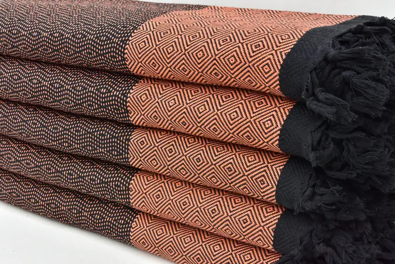 Orange handgefertigte Baumwolldecke, türkischer Überwurf, geometrisches Muster, 79 x 95