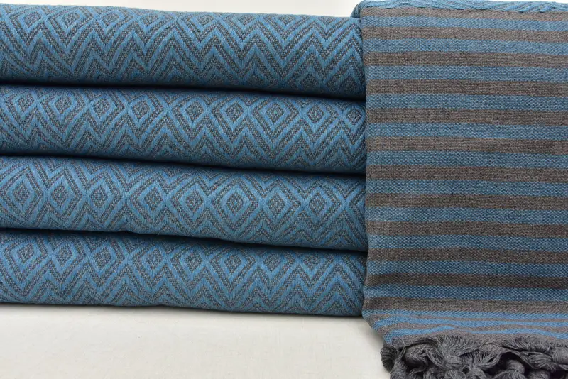 Türkische handgewebte blaugrüne Decke, Baumwolle, 79 x 103