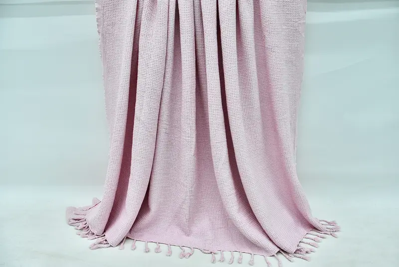 Türkische Decke, rosa Bio-Bambus und Baumwolle, Tagesdecke, 82 x 67 cm
