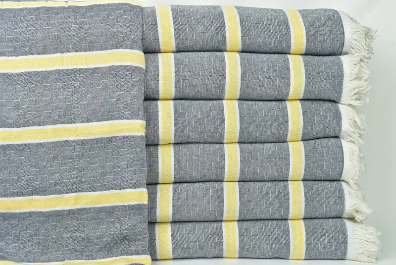 Stranddecke, marineblau-gelb gestreifter Überwurf, 210 x 241 cm