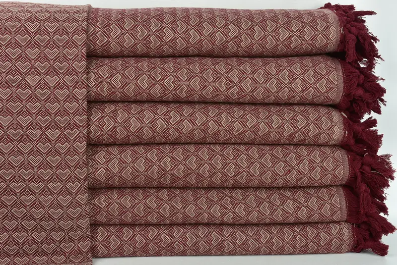 Türkische Tagesdecke, handgewebte Decke, burgunderfarbener Überwurf mit Herzdesign, 75 x 87 Zoll