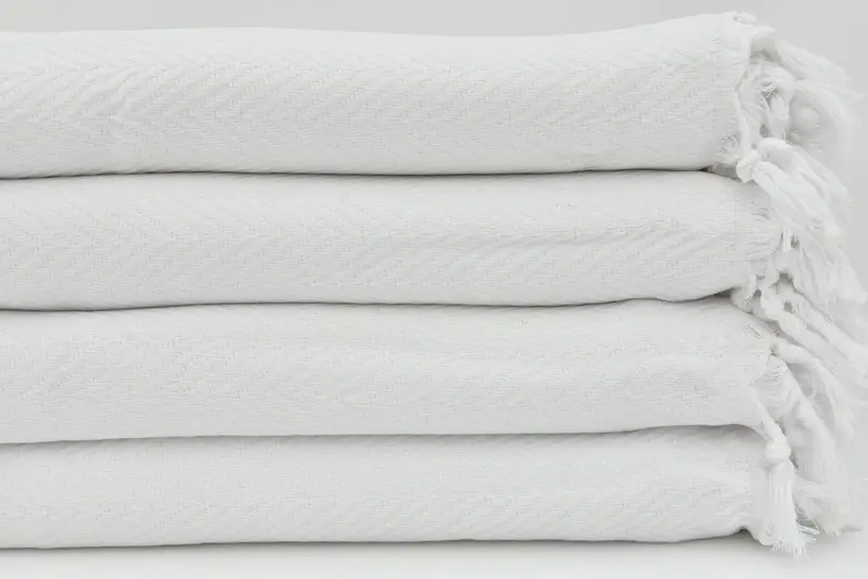 Weiße Decke, weicher türkischer Überwurf aus Bio-Baumwolle, 79 x 89 cm