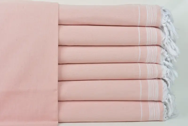 Gestreifte Überwurfdecke aus heller Koralle, türkische Baumwolle, 56 x 91 Zoll