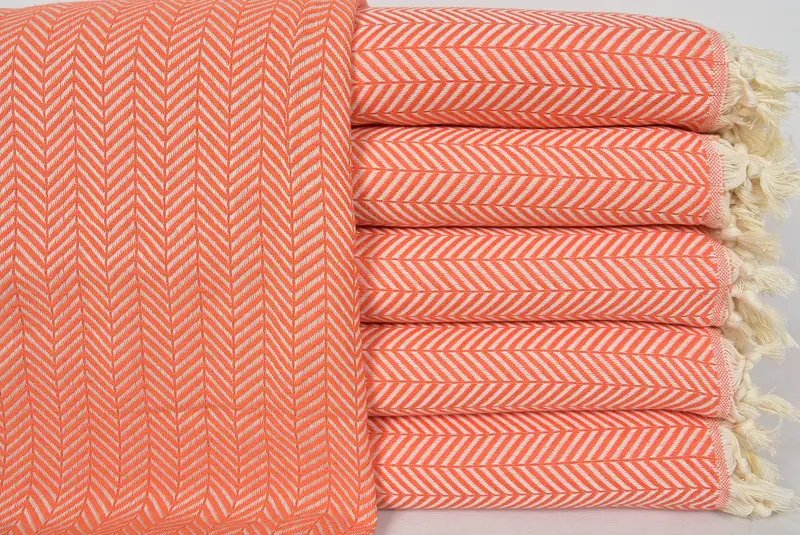 Türkische Tagesdecke, orangefarbene geometrische Decke, 79 x 89, Baumwolle