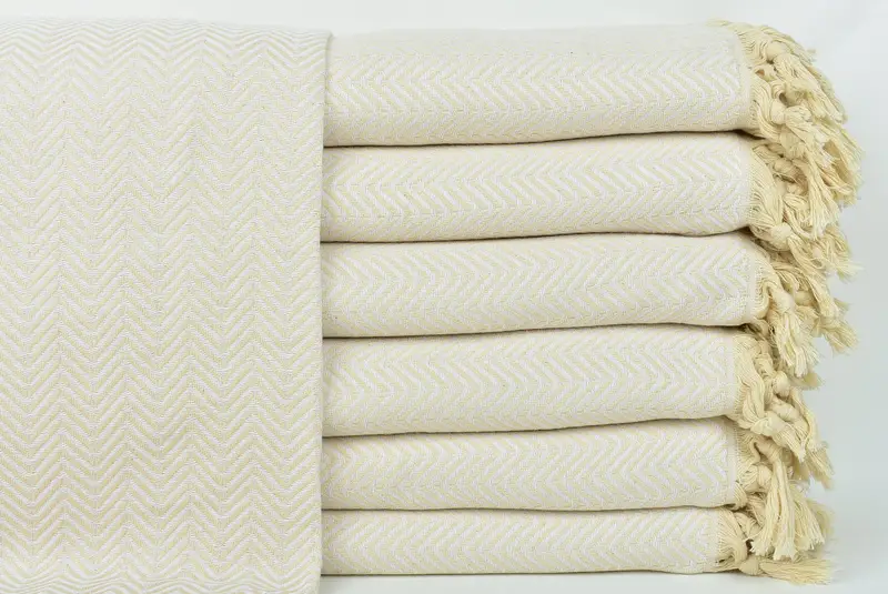 Maßgeschneiderte Chevron-Überwurfdecke in Weiß und Beige, 91 x 75 Zoll