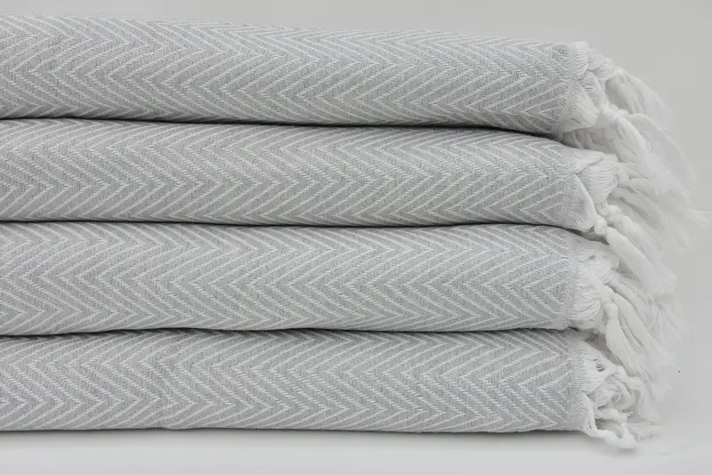 Türkische Decke, hellgrauer Überwurf mit Fischgrätenmuster, 79 x 89, Baumwolle