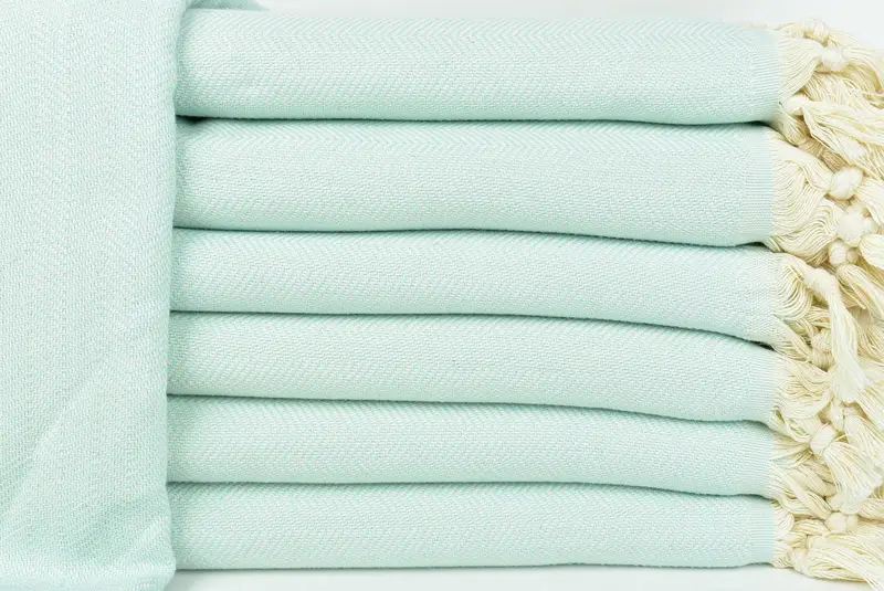 Große türkische Überwurfdecke, Mintgrün, Fischgrätenmuster, 79 x 99 Zoll