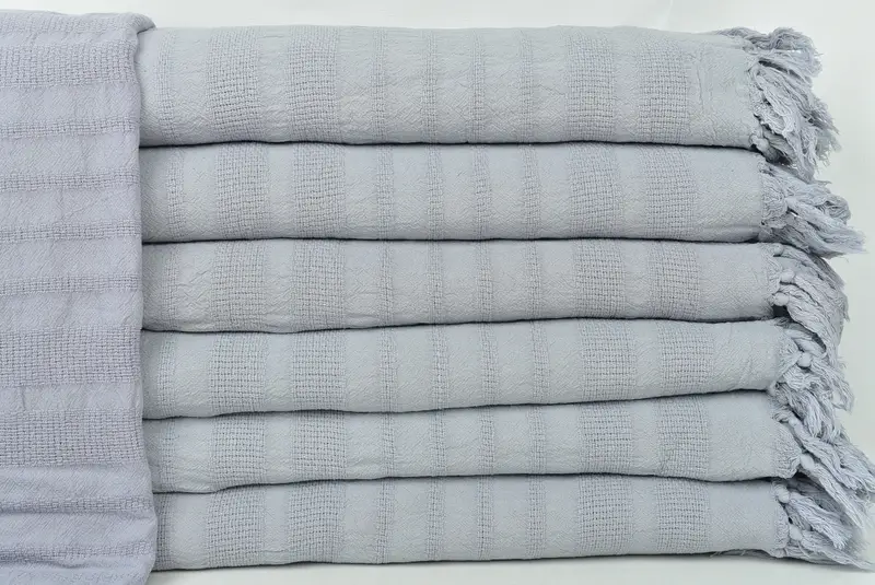 Hochzeitsgeschenkdecke, graue Stonewashed-gestreifte Boho-Tagesdecke, 67 x 95 Zoll