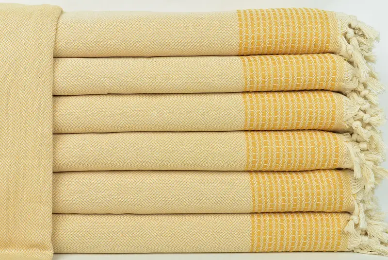 Maßgeschneiderte Bio-Decke und Überwurf in Senfgelb, 91 x 95 Zoll