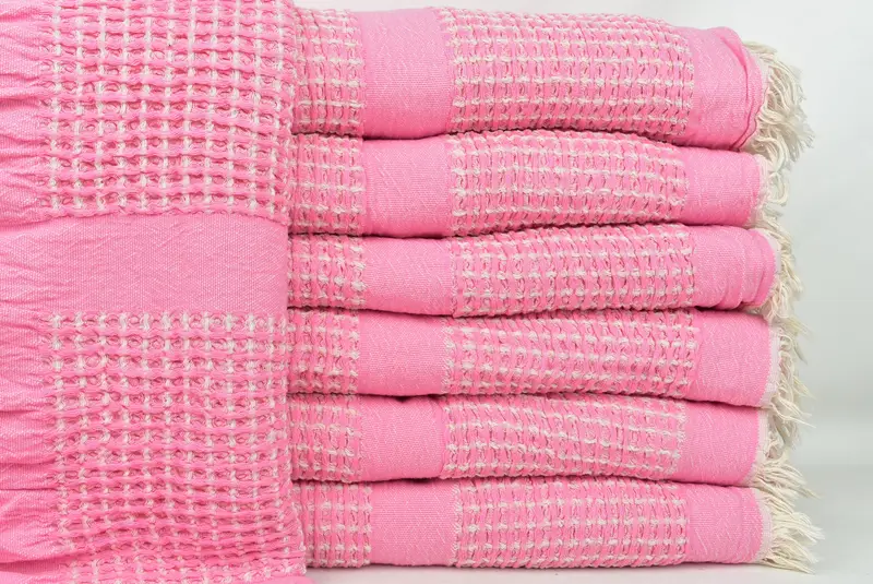 Hochzeitsgeschenk-Decke, rosa Überwurf, Waffelmuster, 79 x 83 Zoll, Baumwollüberwurf